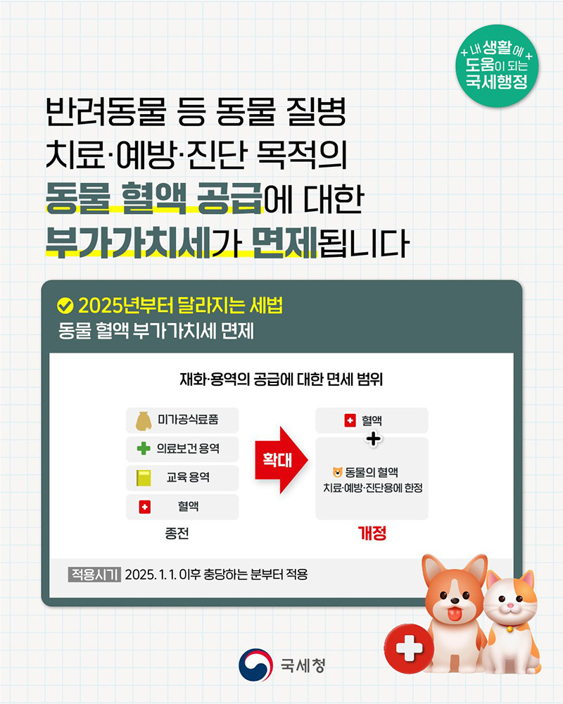 2025년부터 달라지는 세법! 동물 혈액 부가가치세 면제 내용 총정리